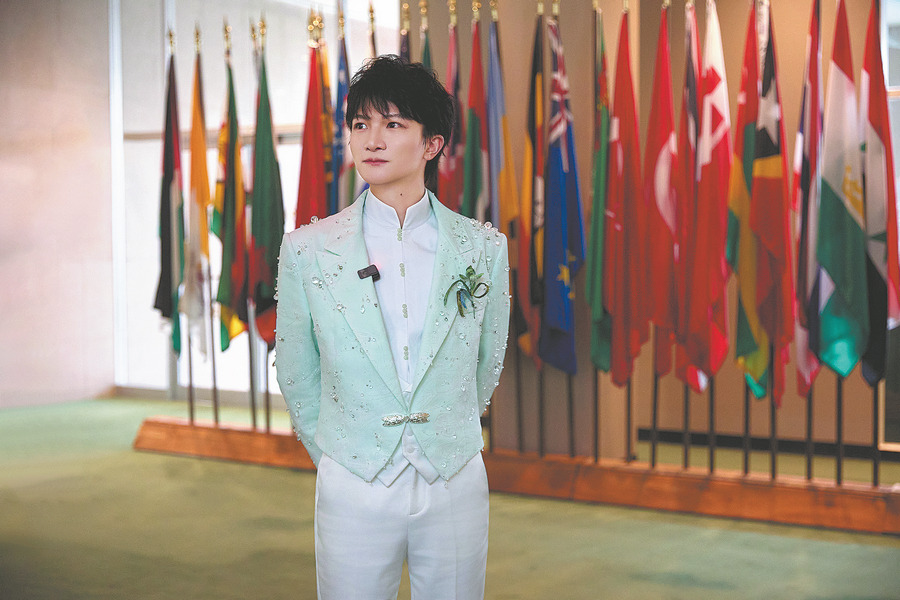 At the conclusion of the United Nations Chinese Language Day, fans of singer Zhou Shen accompanied him from the conference room all the way to the elevator doors. The singer waved goodbye and said "thank you" to those who enjoy his music as he stepped into the elevator.